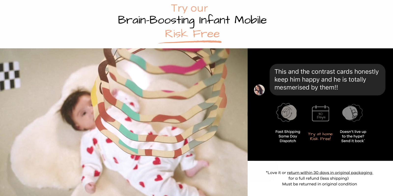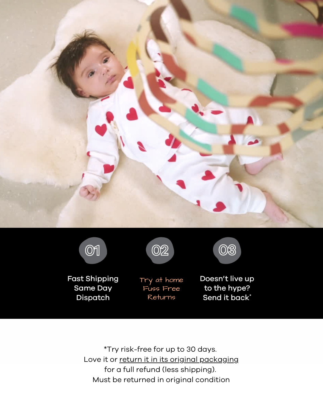We're so confident you will love our Brain Boosting Baby Mobile, we offer a 30 day risk-free trial